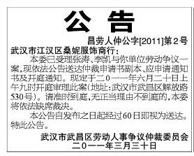 湖北省武汉市 --武汉冲裁委员会仲裁公告登报电话 公告登报电话