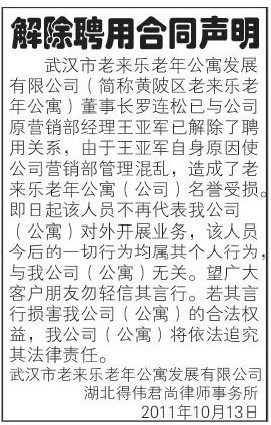(接触聘用合同声明)登报格式 武汉市解除劳动合同登报怎么办理
