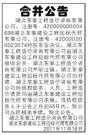 《合并公告登报》企业合并登报公告怎么办理 武汉 合并公告登报多少钱?