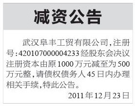 (减资公告登报怎么办理)200元|先登报再付款|今天办理,明天见报|方便安全|公司注册资本减少登报公告|公司减资登报声明范本