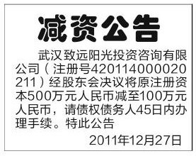 (武汉 减资公告登报 减资登报公告200元)减资公告登报怎么办理