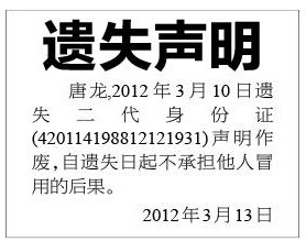 (以上内容登报费用100元)
