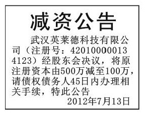 (减资公告登报)武汉公司减资登报公告 注册资本减少登报公告怎么收费 减资声明 公司减资登报声明