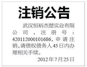 (公司注销登报100元)先登报 再付款 武汉市注销公司登报公告 注销公告登报公司注销登报