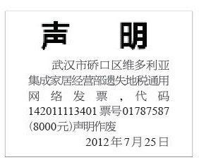 (湖北省地方税务局通用网络发票遗失声明登报)100元 先登报 再付款 挂失发票登报