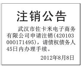 (公司注销公告登报)100元 先登报 再付款 武汉市注销公告登报 长江商报注销公告登报 武汉晨报注销公告登报 武汉晚报注销公告 注销营业执照怎么登报 注销公告登报怎么写 注销公告怎么登