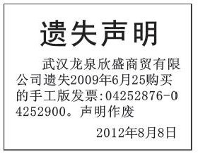 (手工版发票遗失声明登报)挂失发票登报 国税手工发票丢失登报