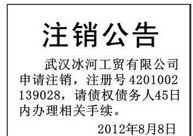 (注销公司登报公告) 先登报 再付款 100块 武汉公司注销登报公告注销公司登报公告 公司注销登报怎么办理 办理注销公告登报