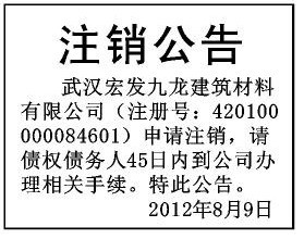 (公司注销登报公告注销公司登报)100元 武汉市注销公司登报公告模板 登报公告登报费用 登报手续 注销公司登报100块·先登报再付款