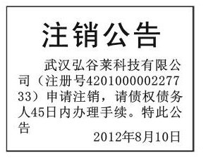(武汉市注销公告登报)100元 先登报 再付款 注销公司登报公告 公司注销登报公告